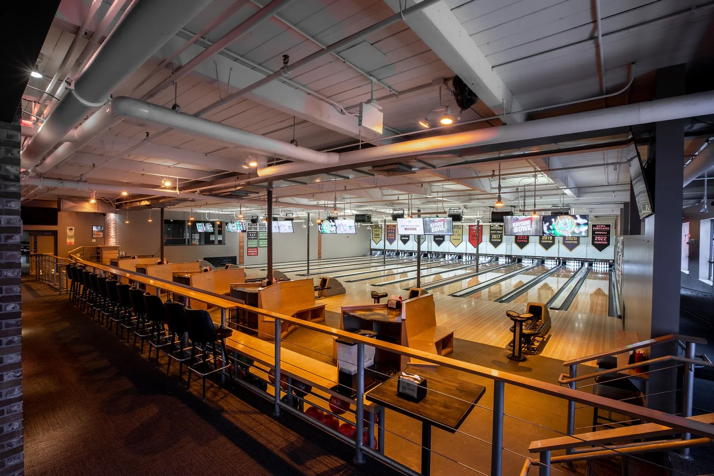 (before tax and gratuity)This space overlooks the West side lanes and features a private bar, a 98" TV, ping pong, and both elevator and stair access.